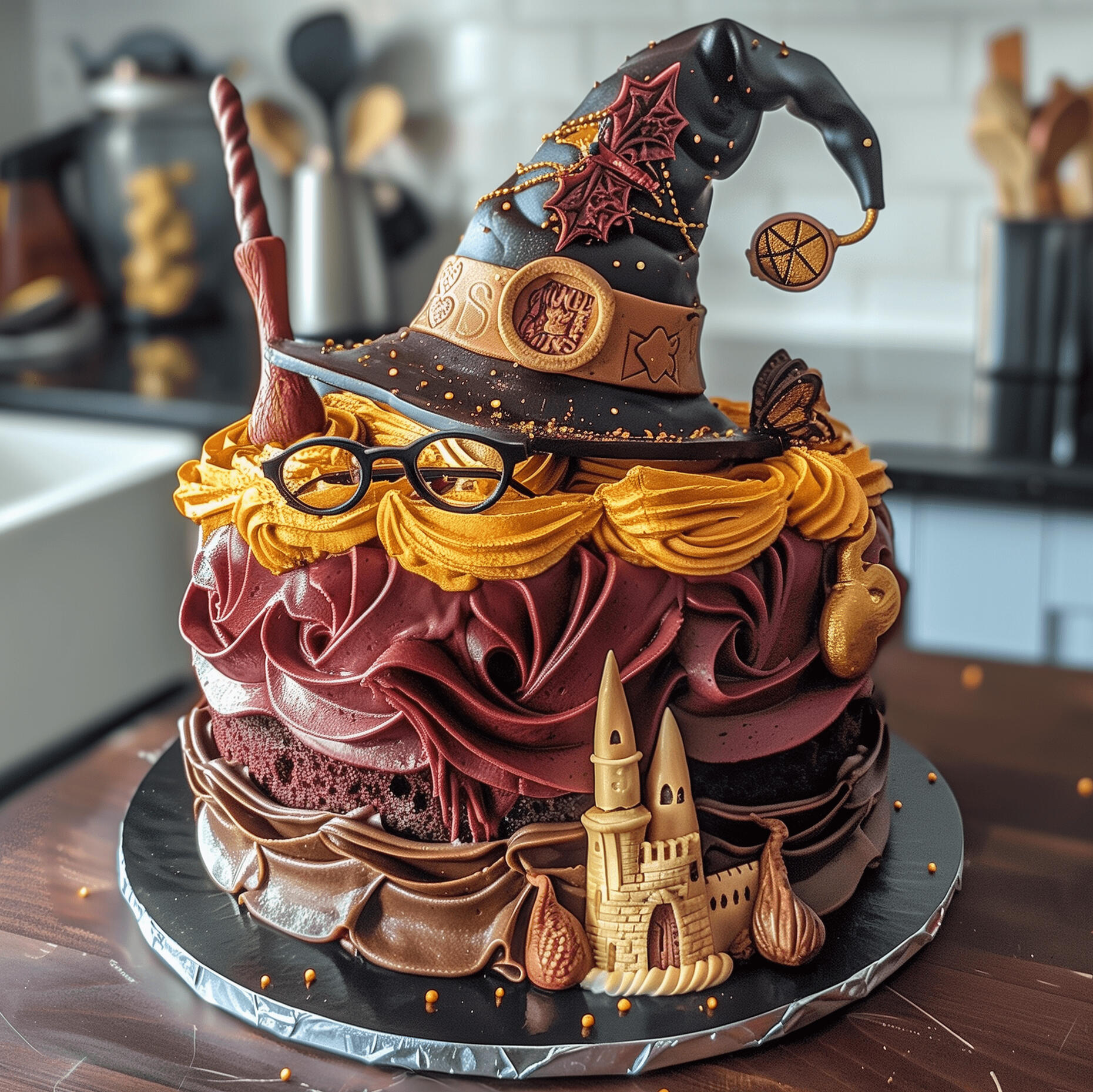 Cast a spell on your guests with a Harry Potter-themed cake, complete with a sorting hat, wand, and other magical elements.